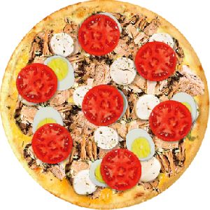 Atum, palmito, ovos, tomate, mussarela e bacon