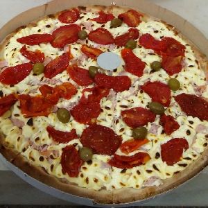 Calabresa, frango, palmito ,mussarela e bacon