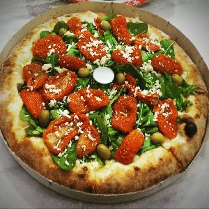 Rúcula, tomate seco e mussarela