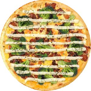 Brócolis, mussarela, catupiry, bacon e alho frito